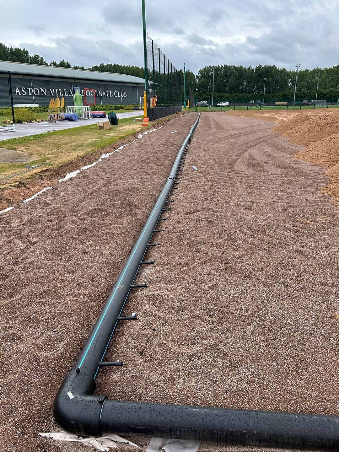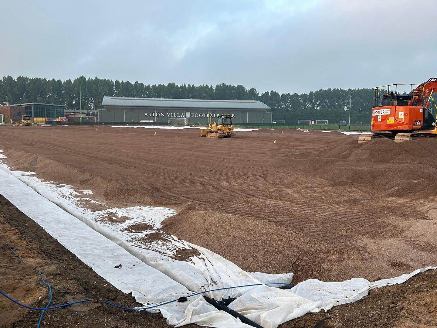 Irrigation and undersoil heating installation at Aston Villa F.C by R&L Sports Turf Irrigation.